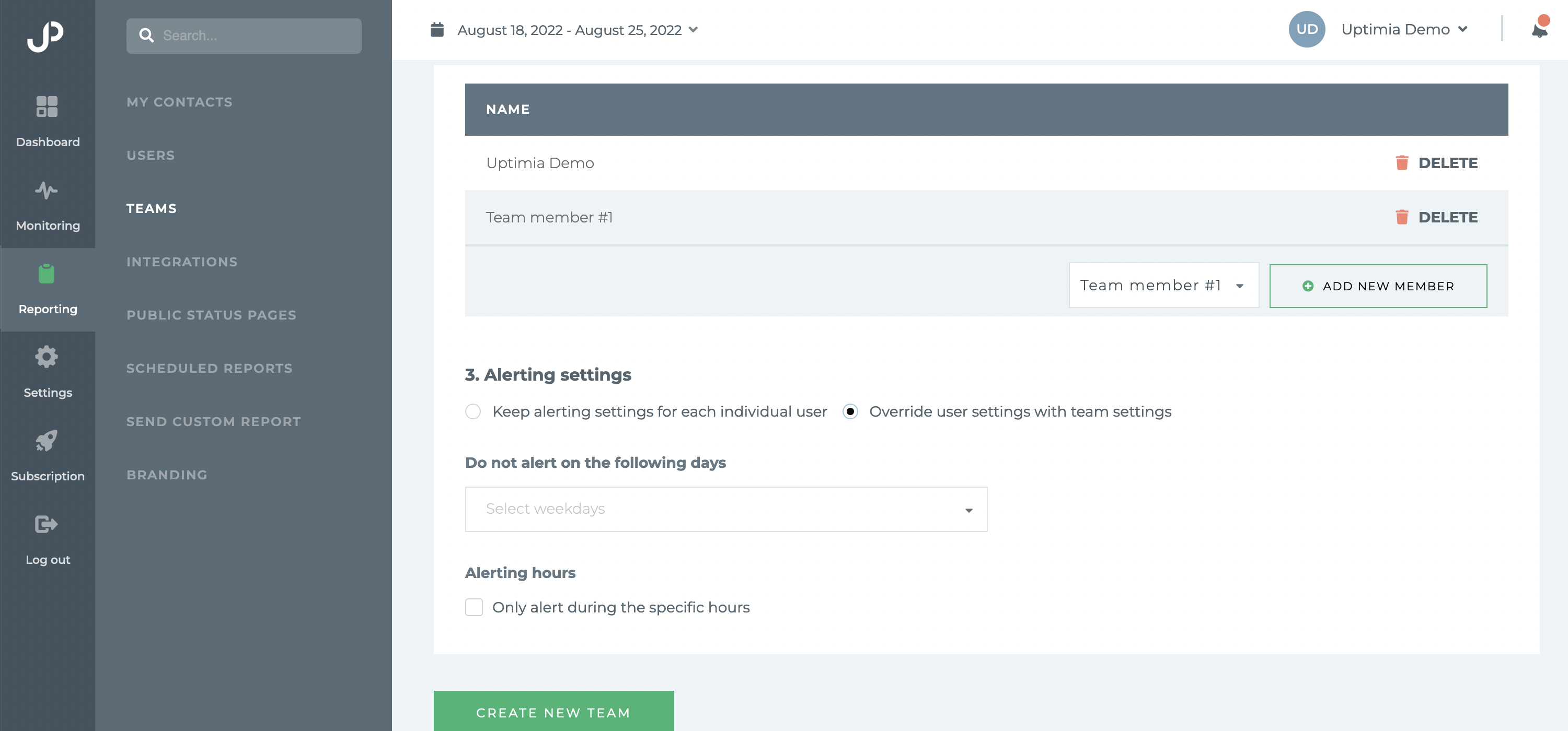 It is also possible to set specific alerting times for the whole team and override their individual settings. Team settings will only be used if the whole team is assigned to receive alerts.