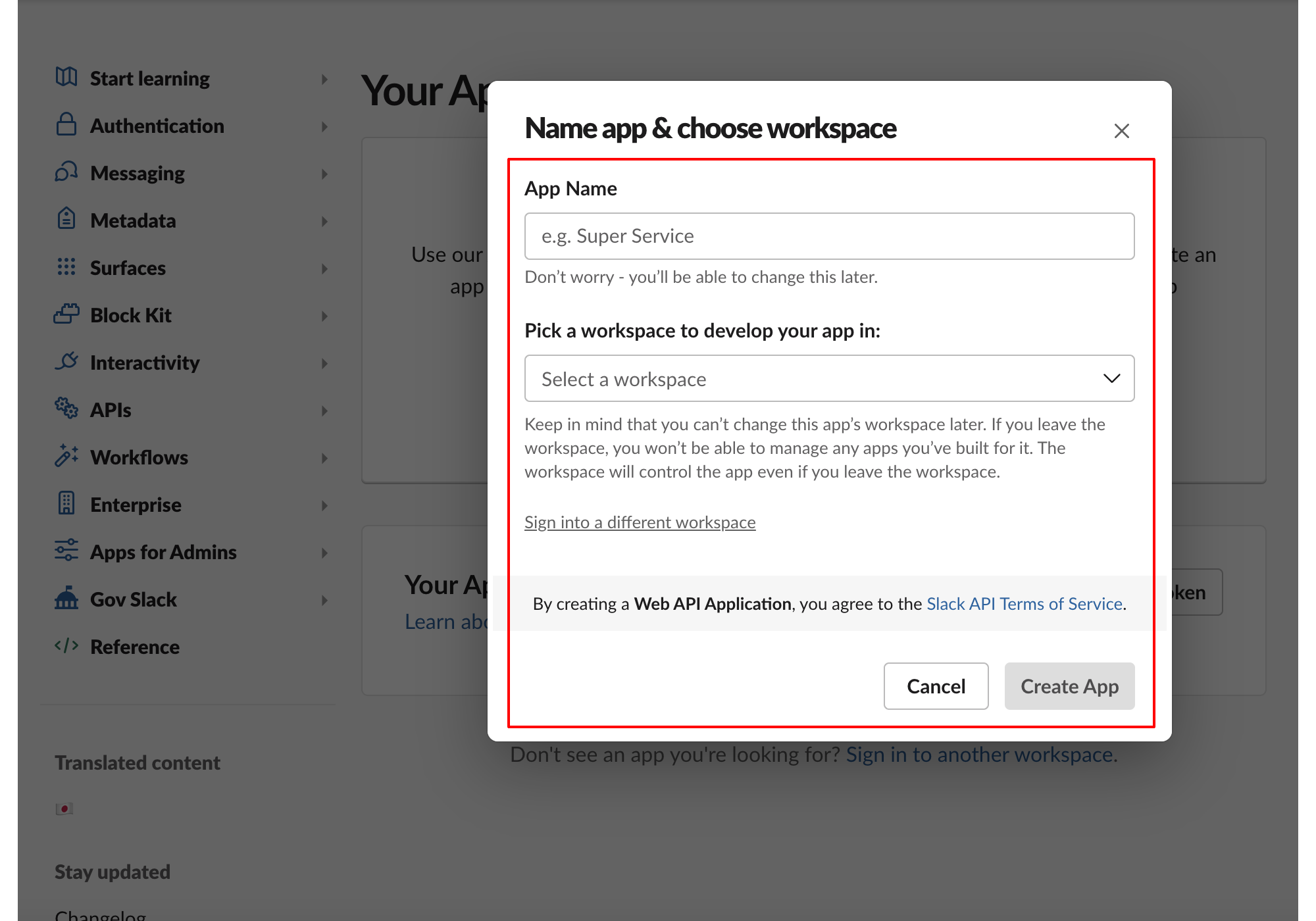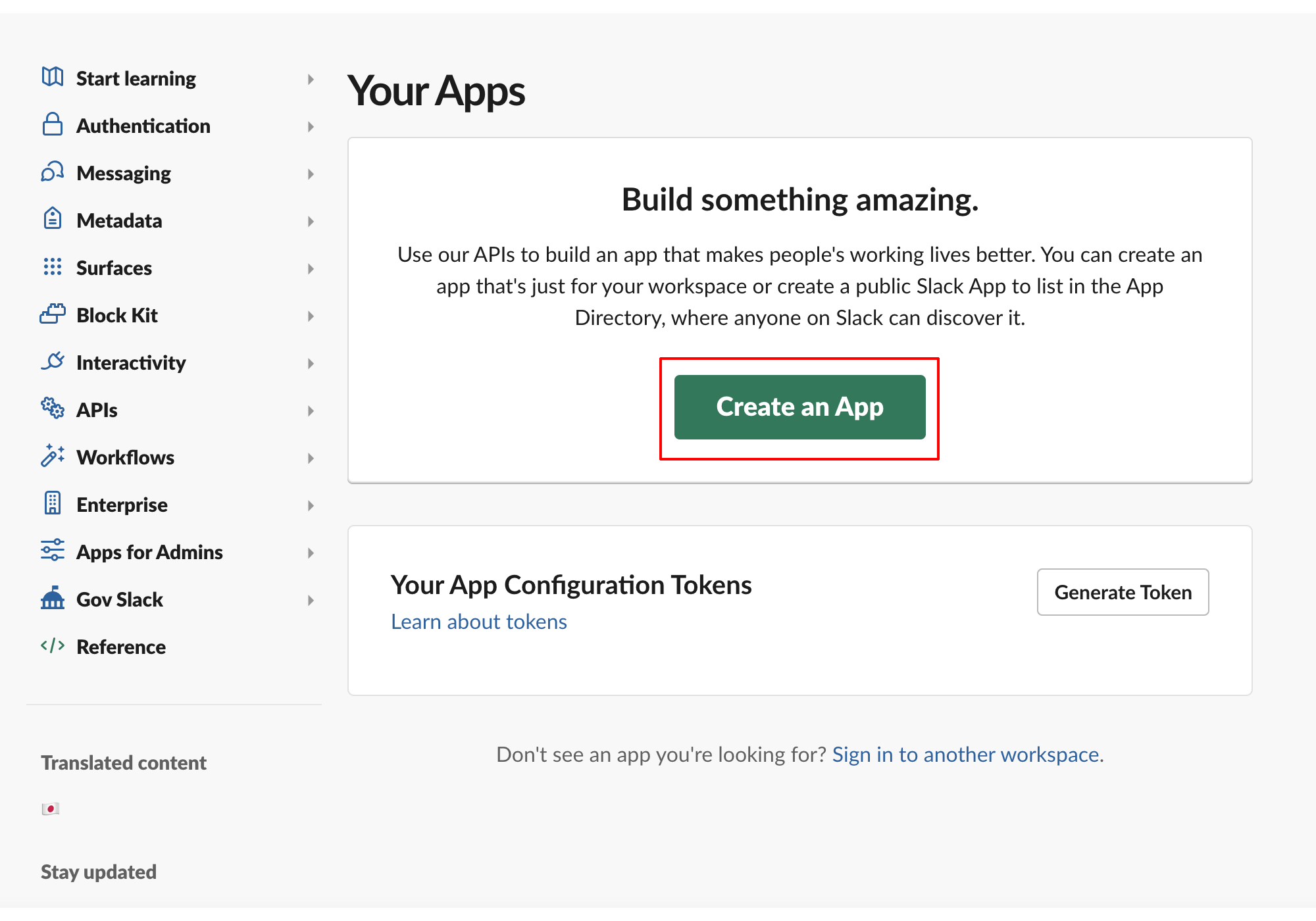 To integrate Slack with Uptimia, go to the Slack API website and create a new app or select an existing one.